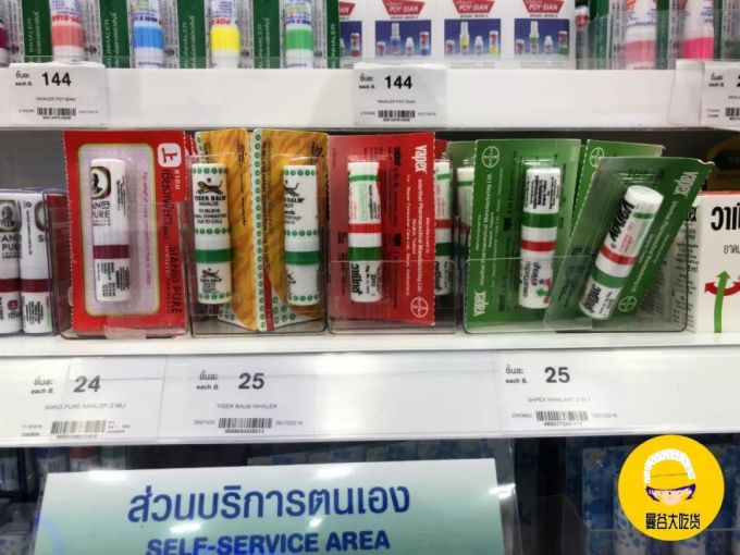 泰國當地人必備的常用藥,多數遊客可能都知道代購們火熱的那幾個品牌。實際上,泰國的青草藥膏種類很多,功效都類似。蚊蟲盯咬、暈車、暈船、疏鬆筋骨、亦可緩解女性經期疼痛等,可謂“神藥”,泰國版的“萬金油”。黃色和綠色是比較常見的~