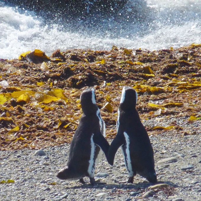 在這裡,總是能遇到憨態可掬的企鵝,或笨拙地在路上左搖右晃地行走,或在溫暖的陽光下酣睡,特別可愛。