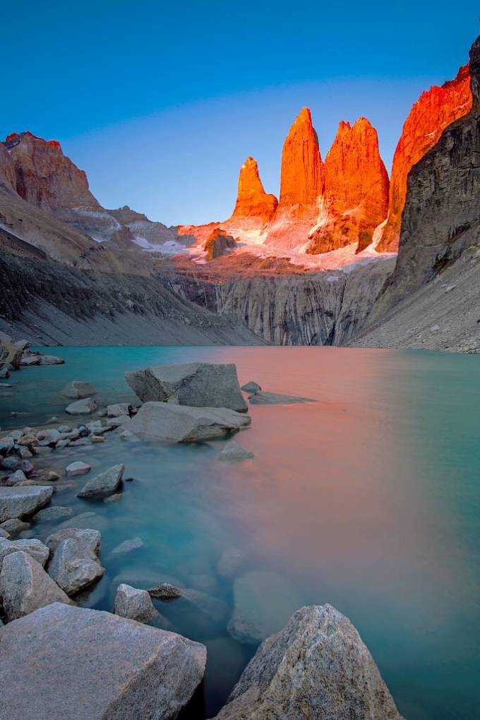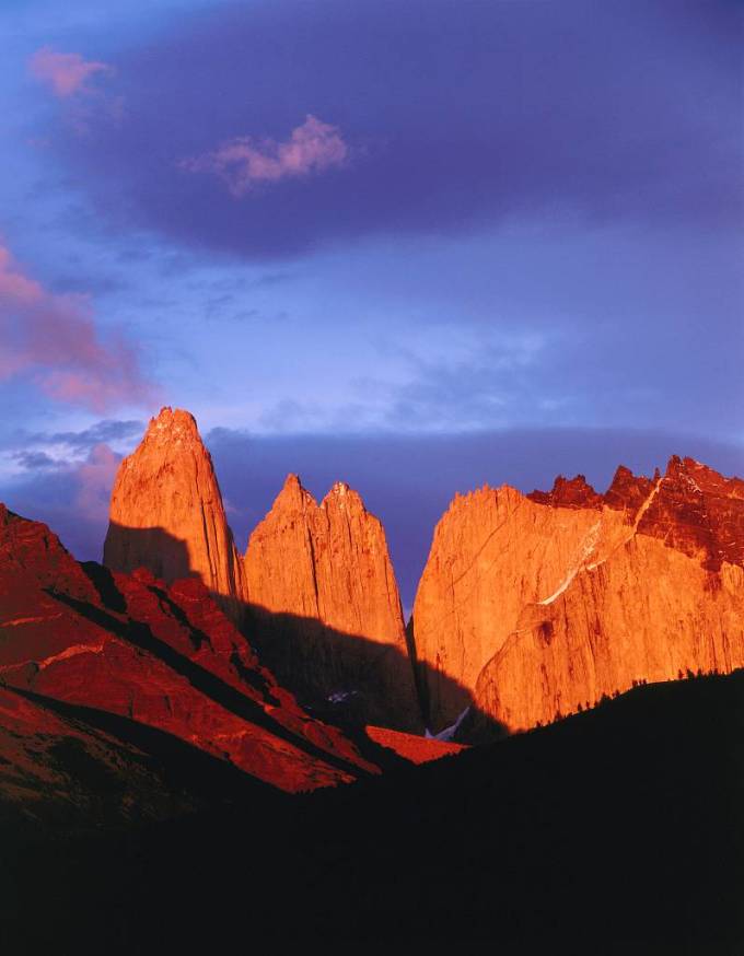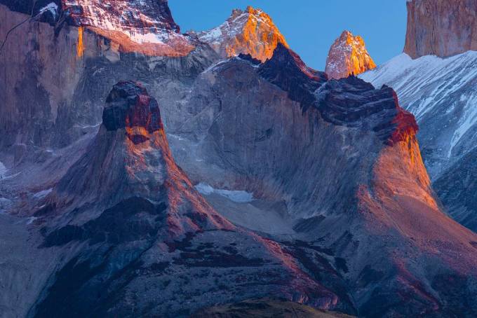 整個百內就像一個超級劇場,主演是冰與山,配角是天、地、雲和水,特邀嘉賓是日出和日落,導演當然是大自然。山的線條和造型真是太奇幻了,冰則像它身上的華服,每一幕在它們的演繹下都精美絕倫且變化多端。