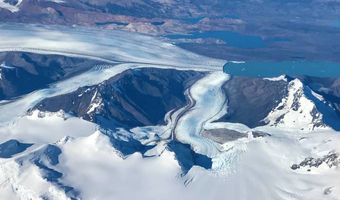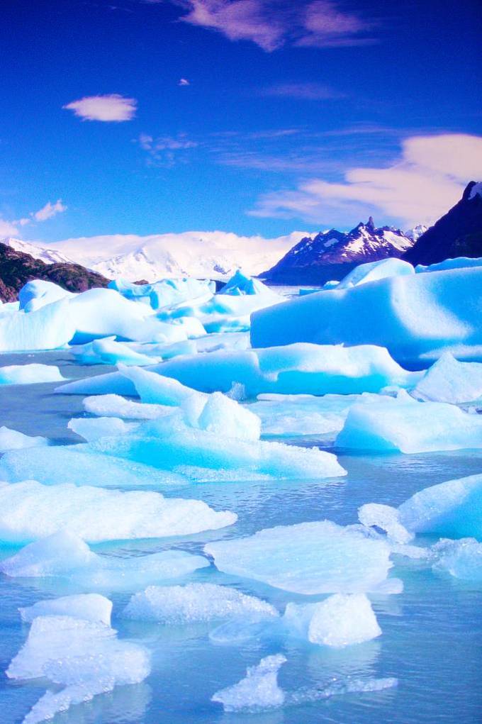 這座湖泊由智利和阿根廷共享,被安第斯山脈的高山所環繞,是冰川造成的冰磧湖。細細的冰川粉賦予湖水超凡的藍色,同時讓湖水如水晶般透明,充滿夢幻色彩。