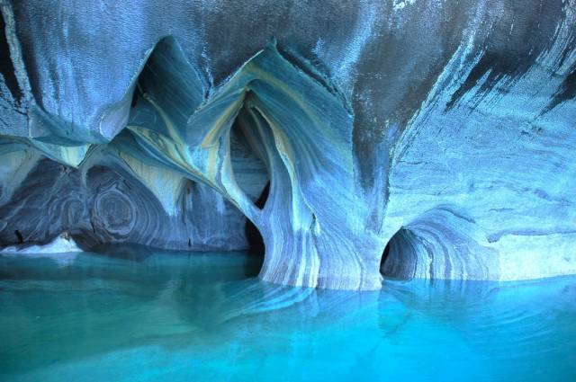 湖泊中的大理石教堂(Marble Cathedral)可以稱得上是一個自然奇蹟,也是世界上最大的洞穴網絡之一。划船在岩洞中穿行,感嘆大自然的鬼斧神工。