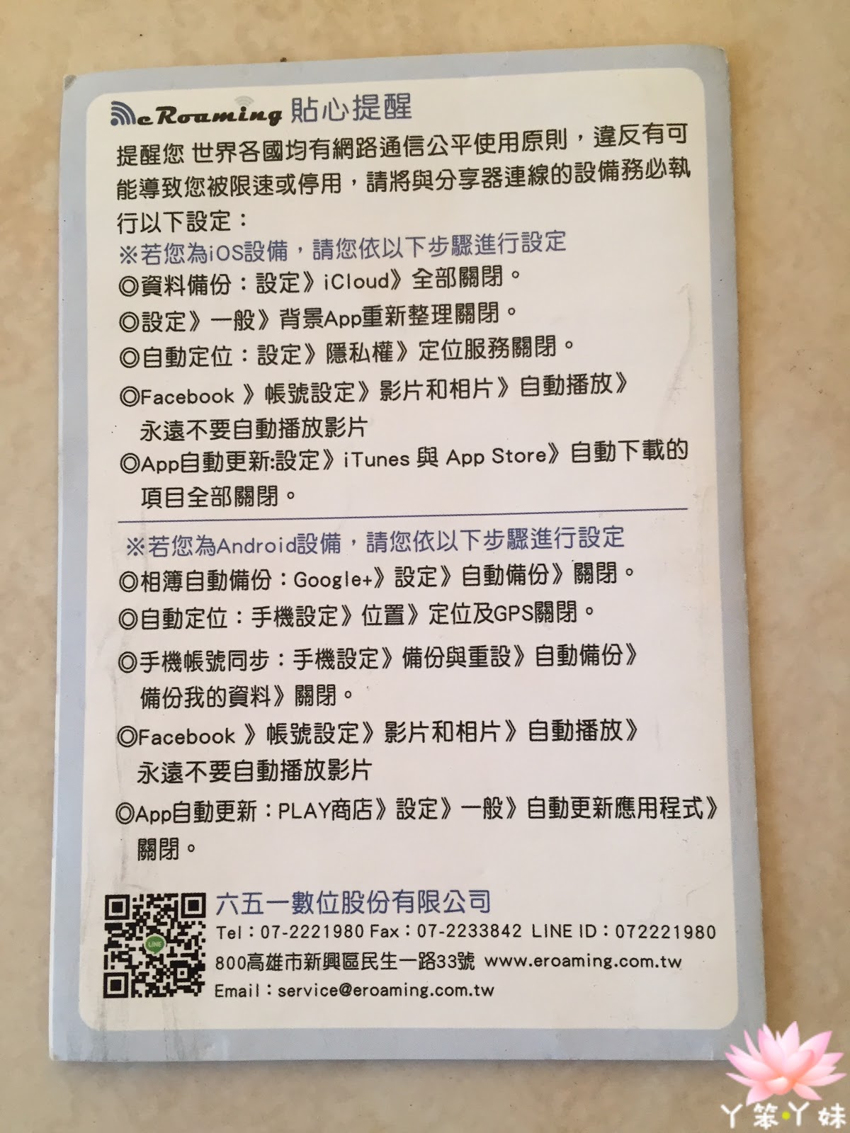 機器本身輕巧,沒有過熱的問題,放入女孩們的小包包也不佔空間。電池不耗電,一整天在外面使用剛剛好。還有,必須感謝eRoaming耐心體貼即時的客服人員。Y笨Y妹在旅行最剛開始時,wifi分享器出現了連線問題,透過LINE與客服人員聯絡,客服人員及時回覆,也將Y笨Y妹的問題轉給工程師,由工程師在後台做測試。埃及本身基礎建設依然需要加強(3G),95%都是沙漠,也在1978年終於獨立。2011年還有政變,基本上現在埃及政府可能還沒有將重心放在基礎建設以及觀光產業上。使用者如果遇到連不上網路的情況下也不要驚訝,可以將分享器關機後再重新開機抓訊號。再次連上網路後,可以與客服人員反映,請工程師查詢是否為機器問題還是當地塔台問題。整體而言,分享器基本上可以社交軟體打卡、查詢email(Y妹美國工作郵箱的email有時候會有點慢才收到)、與家人Skype聊天(10天一共打了5次到台灣市話,每次30分鐘)都沒有問題。上傳照片到雲端與線上影片播放會很慢,基本上需要很大的耐心。
