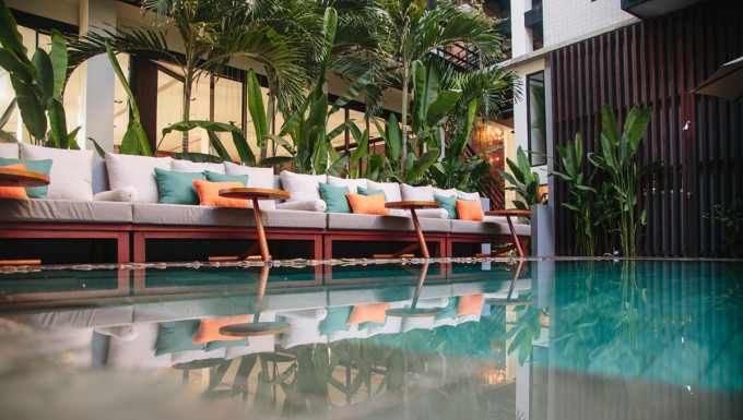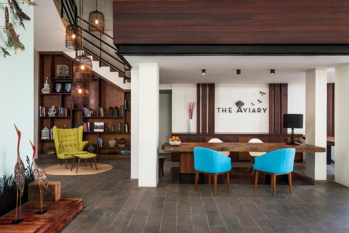 每一間房都是不同的鳥類主題,例如縫葉鶯房或者赤頸鶴套房。房間的配色和裝飾、被叢林植物包圍的酒吧,和環繞著藤曼植物和花朵的中央泳池,這些都無形中彰顯著親近自然的氣質,和現代化的柬埔寨特色。