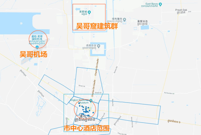 圖:暹粒市中心區域酒店分佈(源自網絡)