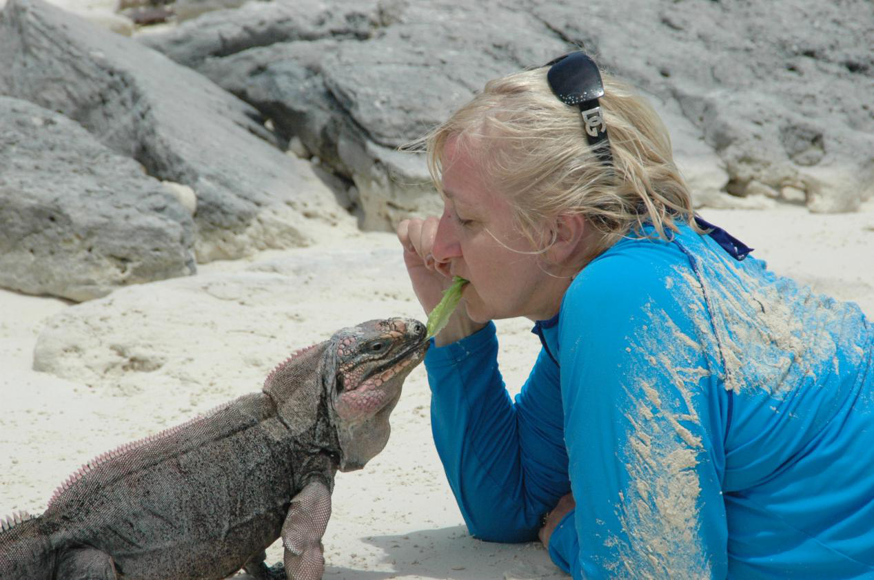 巴哈馬島上的蜥蜴長得醜醜的,看著有點嚇人,但是真的很溫柔(挺大個子卻連島上的鳥都打不過),是地道的素食主義者,奉行著仙女般的飲食習慣,吃一些植物根系/水果/花瓣/麵包就非常滿足~膽小的傢伙們接受投餵時,會一扭一扭地走過來,吃完就趕緊逃走啦~
