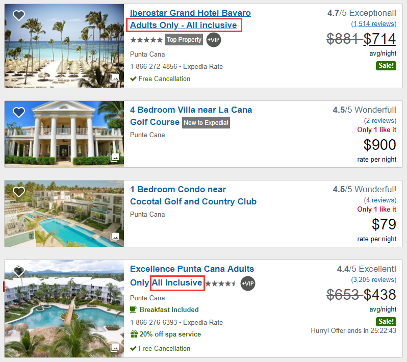 Epedia上可以直接預訂全包酒店,注意留意all inclusive字樣哦!還有些酒店對入住者年齡也有限制,預定時一定要看清。