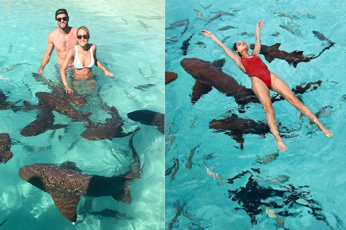 鯊魚一向都難以避免“在海裡都得叫我爸爸”的臭名聲,但在Exuma島上的護士鯊卻不是這樣的,它們體型嬌小,長得虎頭虎腦,就像鯰魚一樣。而且由於是人工餵養,所以雖然也有寬大的背鰭,但卻不會動輒咬人大腿,性情非常溫馴,喜歡靜靜地躺在水底捕捉小魚兒吃。