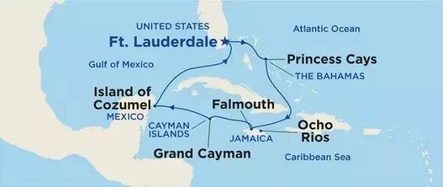 和東加勒比海風景優美的島嶼、海灘景色相比,西加勒比海展現給我們更多的是文化層面的東西,航線一般會經過美國、墨西哥、海地、大開曼、牙買加等地。