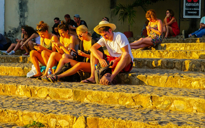 每當傍晚時分,城中央的廣場上,常常可見世界各地的遊客聚集在一起,不同的膚色映襯著特立尼達多彩的街牆,聽著熱烈流暢的音樂,歡樂又悠閒。