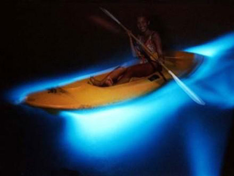 其實!全世界只有五處熒光海,其中兩處在澳大利亞,還有三處在加勒比海,波多黎各就佔了兩處,Fajardo碼頭邊有一個,Vieques島上有一個。V島上的熒光海是世界上最亮的,非常值得一去!