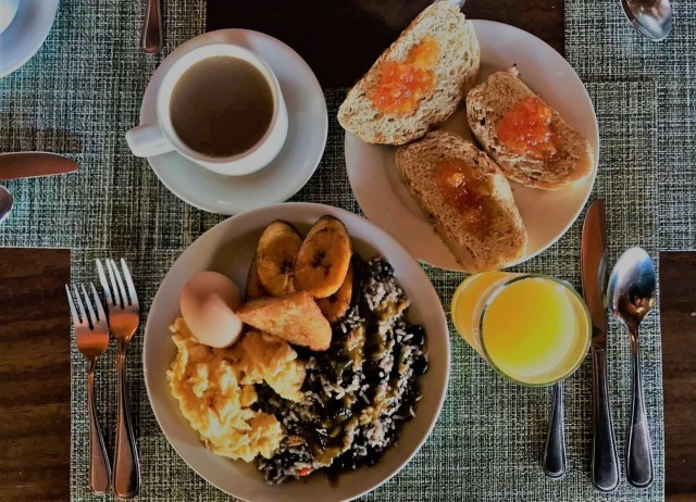 和很多拉美國家一樣,哥斯達黎加的食物通常都有米飯和豆子。Gallo Pinto大概是最有名的一道菜了。它屬於早餐,裡面有米飯、豆子、香菜、青椒、洋蔥,還有一種惹人垂涎的Lizano醬汁,通常和玉米餅、雞蛋、白芝士、甜的油炸車前草一起吃。午餐和晚餐也有米飯和豆子,但通常配雞肉、豬肉或牛肉。這裡的菜都十分簡單,但吃起來總有一種神奇的味道。