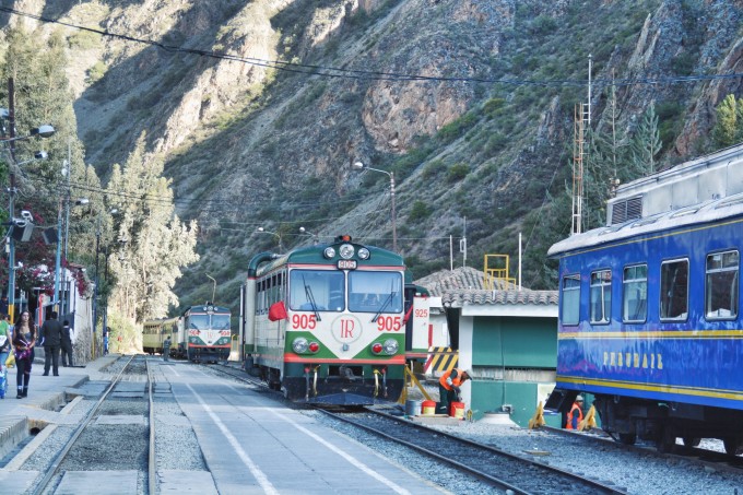 從庫斯科(Cuzco) /歐雁台(Ollantaytempo)前往馬丘比丘山腳下的熱水鎮(Aguas Calientes)的火車一天有很多班次,分別由印加鐵路(Inka Express)和秘魯鐵路(Peru Rail)運營。一天有很多班次可選,可在網上買票也可以到了庫斯科以後在當地旅行社買票。
