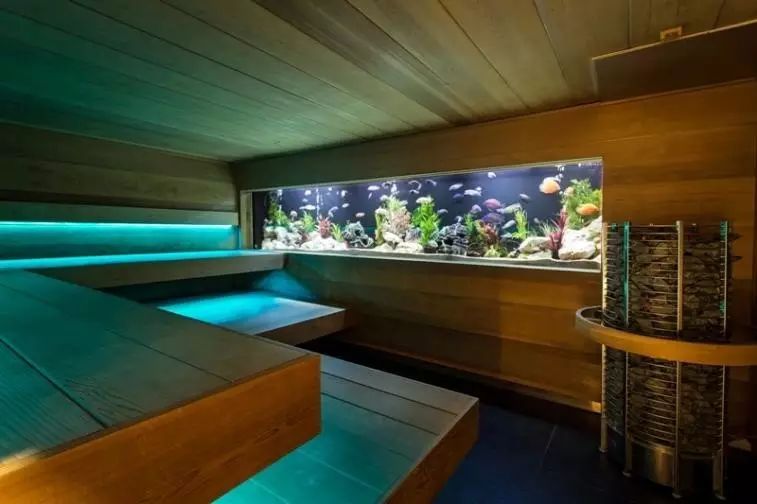 最厲害是這個有水族箱的桑拿房,整個感覺很夢幻。