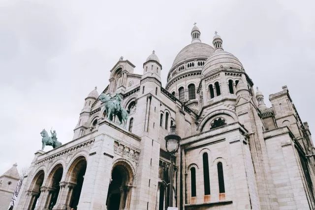 教堂整體是拜占庭兼羅馬風格,頂部有有些泰式風情。站在教堂前可以俯瞰大半個巴黎。這裡也是觀看日落的好地方,所以教堂前的階梯與草地前,傍晚坐滿了人,不少人在這裡一邊喝著酒,一邊等待落日到來。