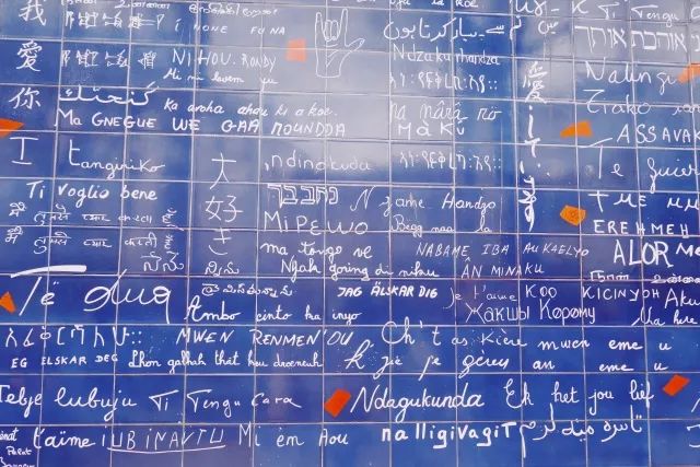 世界級網紅牆,真的就是一面牆 = = 上面是手寫的不同語言的“我愛你”。