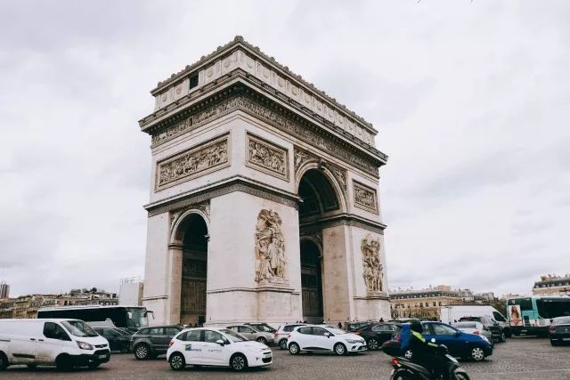 巴黎的又一個地標,為紀念拿破崙1806年戰爭勝利而建。四周都是馬路,近距離看需要走地下通道。頂部可以俯瞰巴黎,不少游客在這裡等待落日。旁邊就是香榭麗大街。