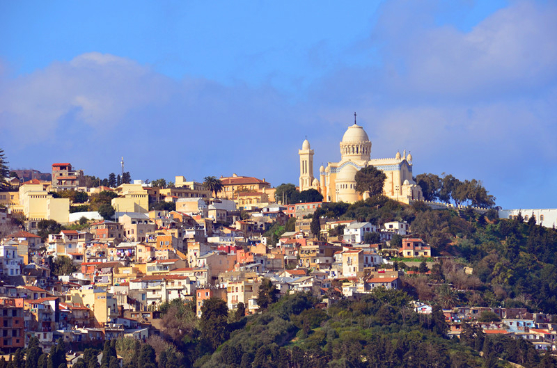 非洲聖母院(Notre Dame d'Afrique)位於阿爾及利亞首都的北面,是阿爾及爾的一座羅馬天主教宗座聖殿。該聖殿建成於1872年,歷時14年。建築採用了當時在法國教堂建築界十分流行的新拜占庭風格。它和在地中海對岸,法國馬賽城中的拉咖爾德聖母院在建築風格上如出一轍,所以常常被人稱為拉咖爾德聖母院在非洲的姐妹建築。