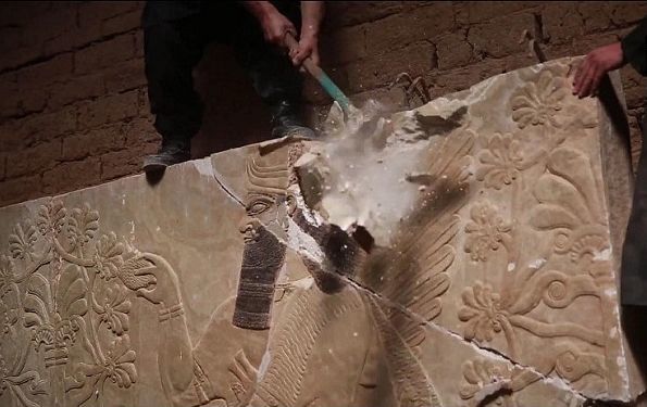 已經成為碎片的巴比夏神廟,砍砸到面目全非的浮雕花紋,被推倒的優雅廊柱,惡意燒毀的內室珍寶……
