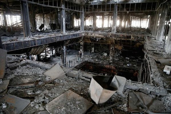 被焚毀的摩蘇爾圖書館。