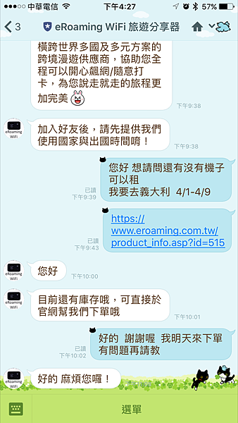 還好eRoaming有LINE的即時客服