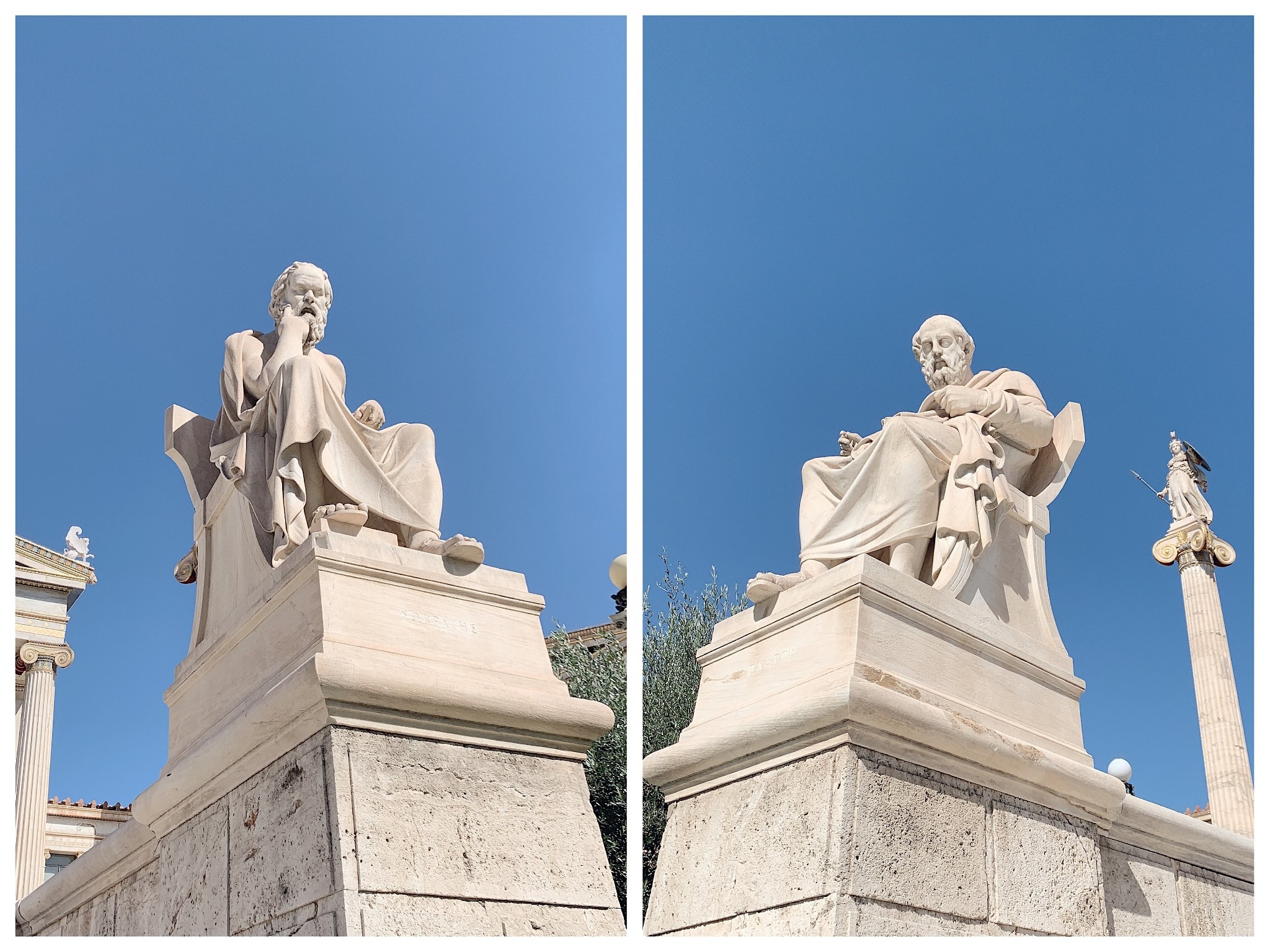 之前純屬路過,本以為是個什麼博物館,後來才知道是雅典大學(University of Athens),並且是希臘成立的第一所大學。據說在建築上,還與雅典學院、雅典希臘國家圖書館並稱為雅典“新古典主義三部曲”。嗯,不懂建築,但能感受到它恢弘的氣勢。這裡不能入內,門前蘇格拉底和柏拉圖的雕像俯視著我,好像在說“今天不學習,明天變垃圾”。