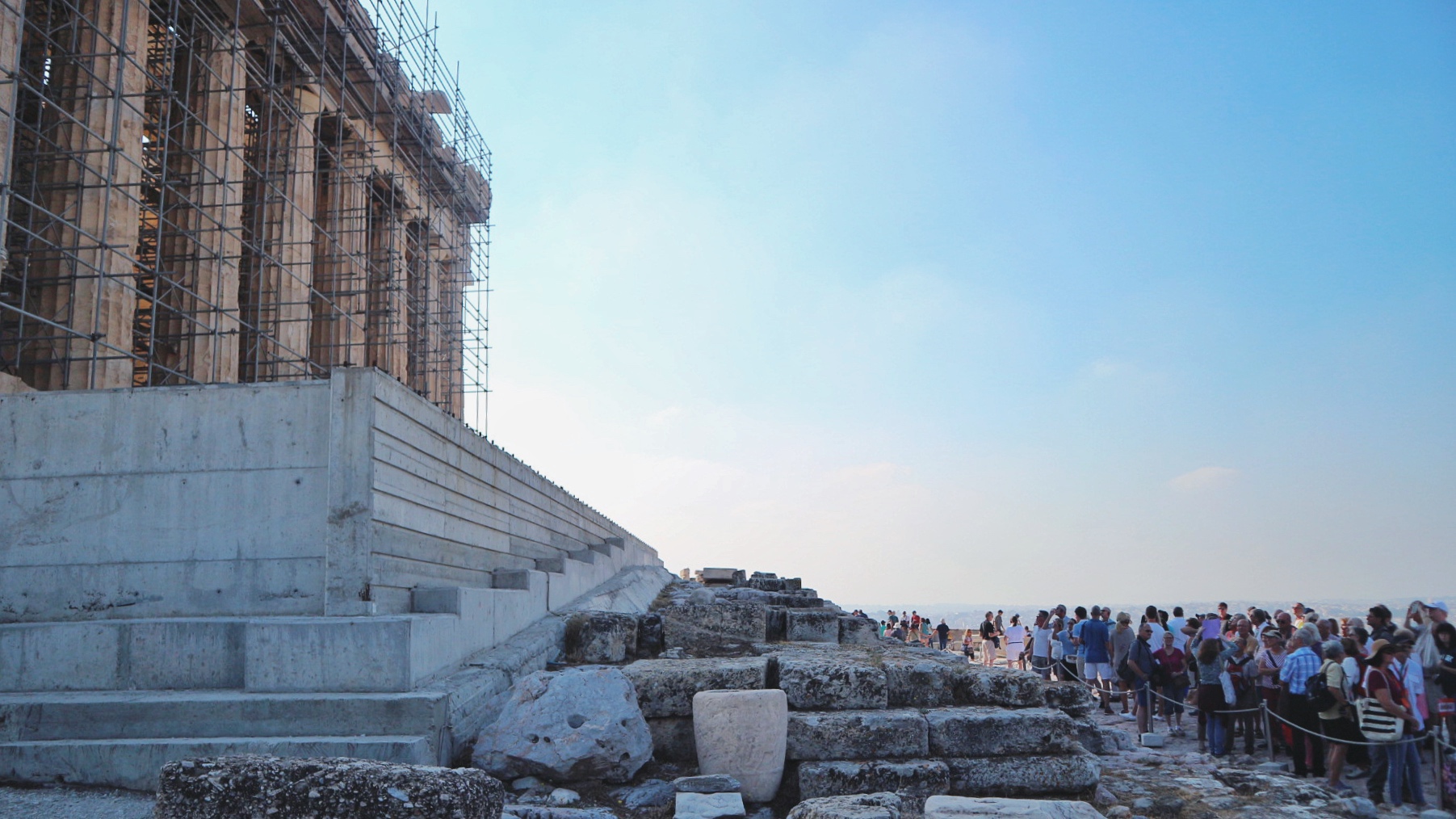 來到雅典,絕對不能錯過的,當然是雅典衛城(Acropolis of Athens),這是希臘最傑出也最有名的古建築群。這裡有現在依然會辦演出和音樂會的狄奧尼索斯劇場(Theatre fo Dionysus),也叫酒神劇場,還有最具代表性的帕特農神廟(Parthenon Temple)和伊瑞克提翁神廟(Erechtheion)。來到這讓我在雅典第一次感受到什麼叫人多,那大概就像居住在北京的人看長城的遊客的感受吧。