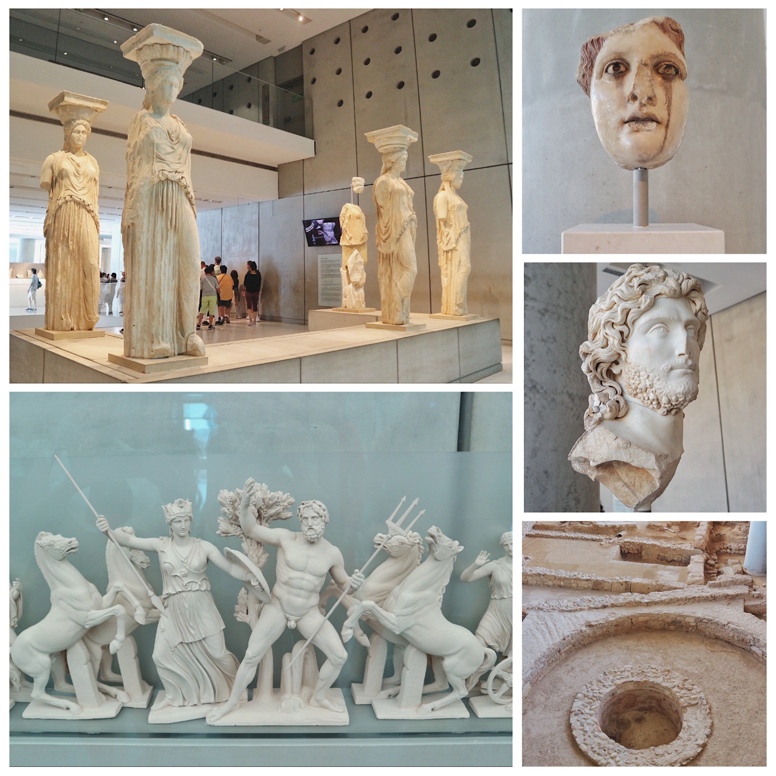 從衛城出來,沿路走大概100多米,就會來到衛城博物館(Acropolis Museum)。裡面擺放了很多文物、雕像等,非常適合熱愛古希臘歷史和希臘神話的朋友參觀。而我,是來瞎逛和呼吸帶有歷史感的空氣的(好的,我在瞎說八道)。Tips:來這個博物館建議女生穿褲子,因為博物館有一個區域的地板是玻璃鏤空的,樓上樓下完全能互相看到,保險起見,選擇褲子會更安心一些。