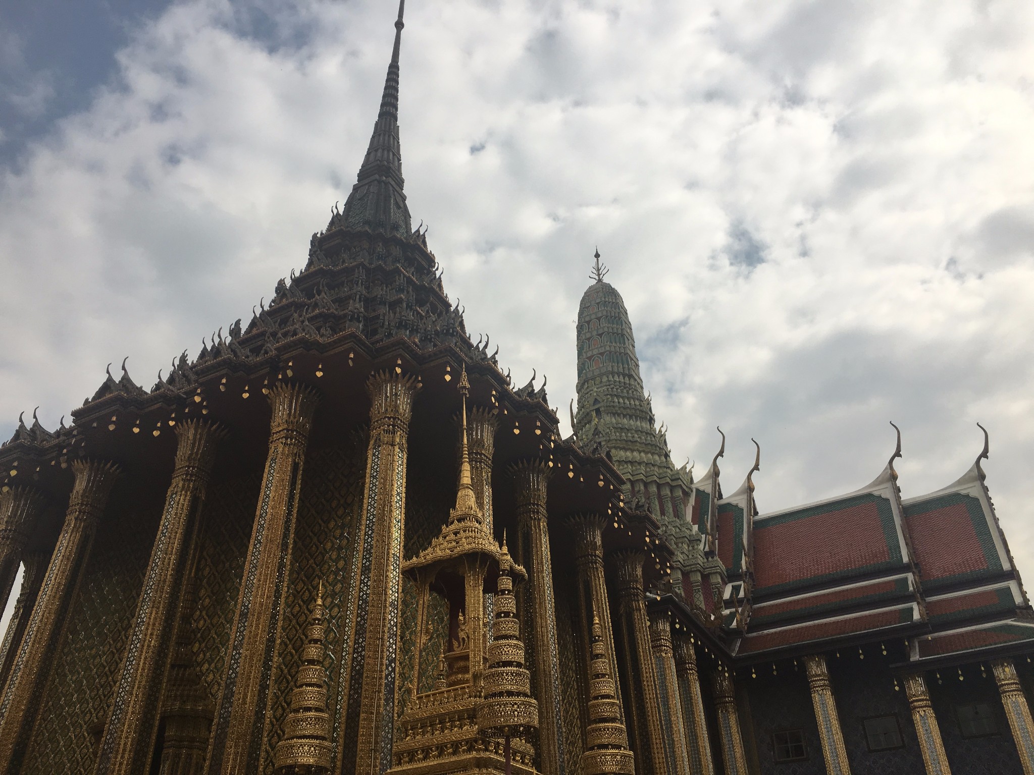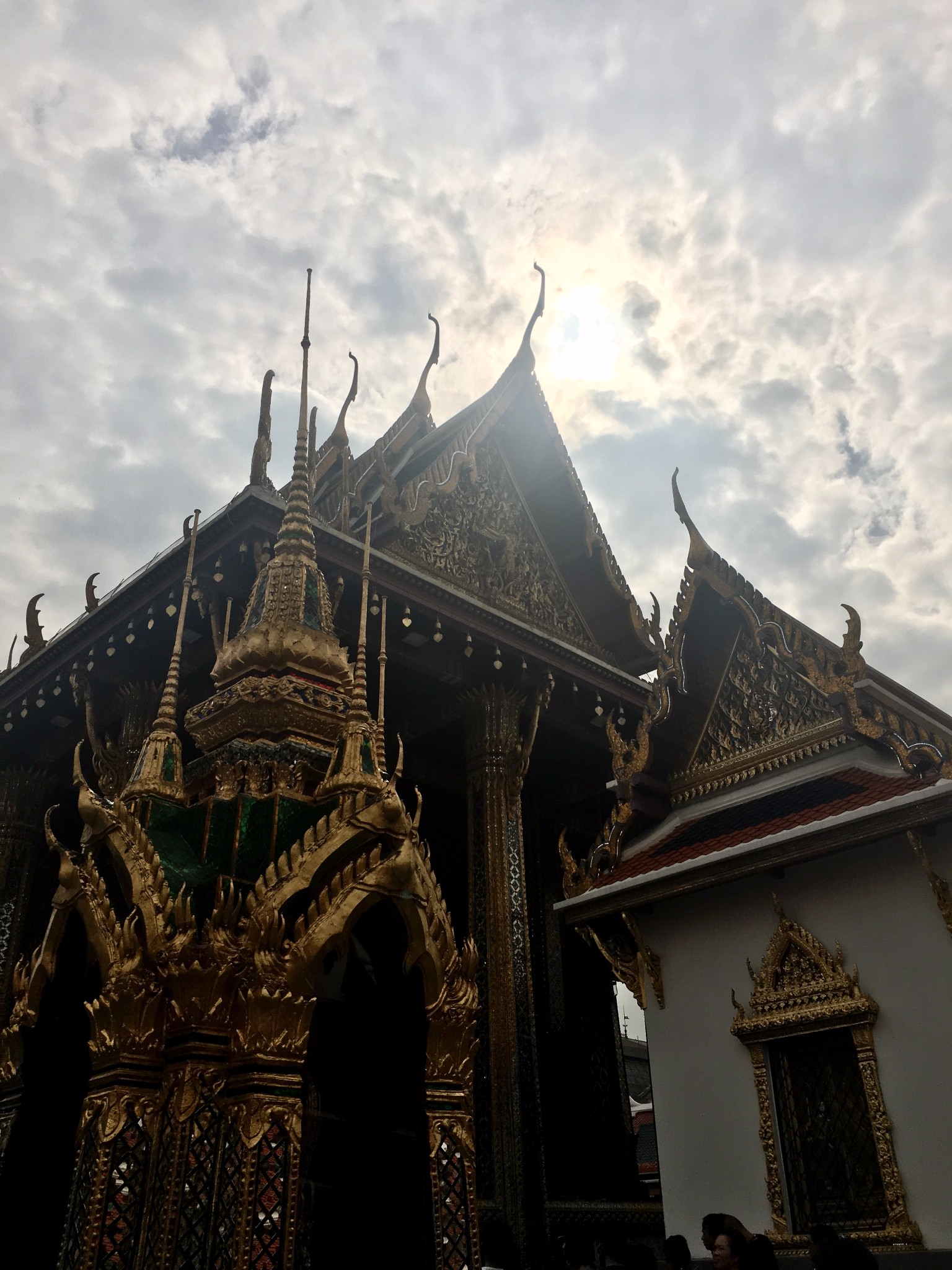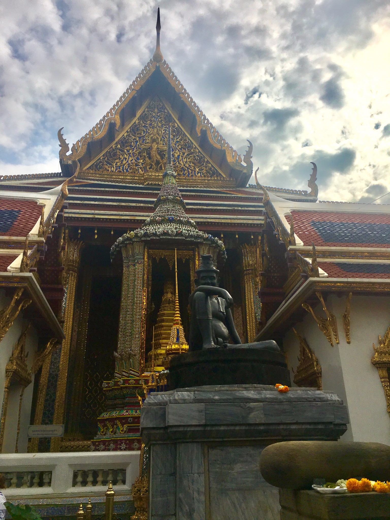 下了碼頭還要走15分鐘左右,進入大皇宮前要注意著裝,短袖長褲(到腳腕)即可。大皇宮的門票是500泰銖/人,講解器的租賃在門票的隔壁,需要護照抵押和200泰銖的費用(具有費用不太記得了,歸還一定要準時)。逛完大皇宮已經接近12點,決定去看四面佛並且在附件吃些東西。