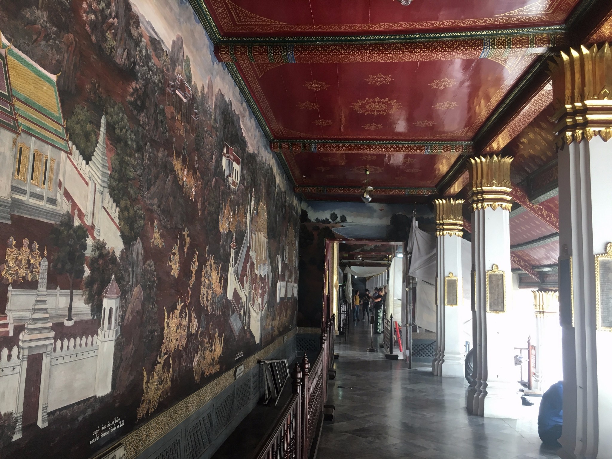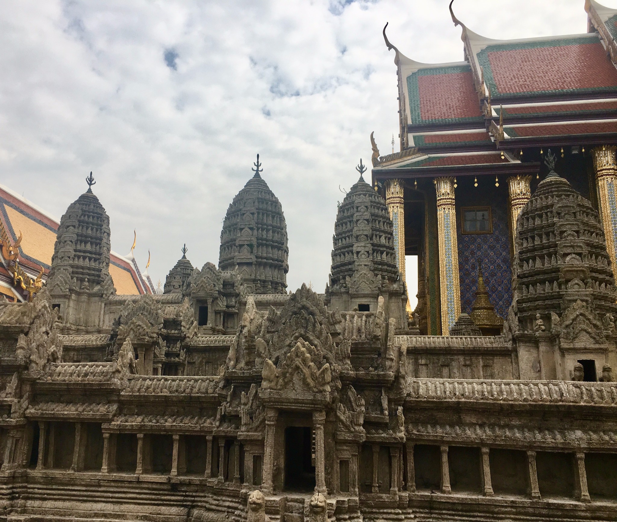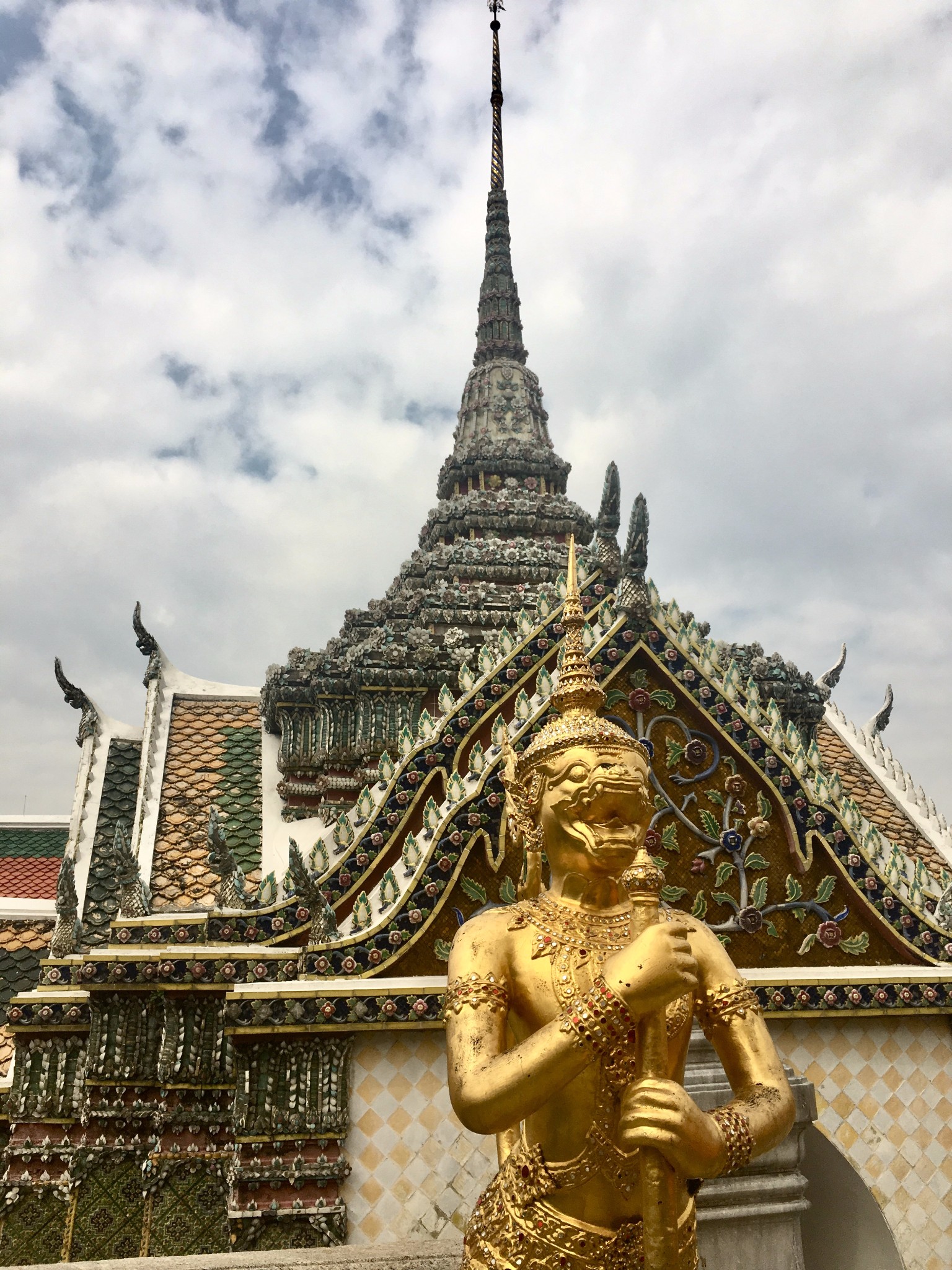 下了碼頭還要走15分鐘左右,進入大皇宮前要注意著裝,短袖長褲(到腳腕)即可。大皇宮的門票是500泰銖/人,講解器的租賃在門票的隔壁,需要護照抵押和200泰銖的費用(具有費用不太記得了,歸還一定要準時)。逛完大皇宮已經接近12點,決定去看四面佛並且在附件吃些東西。