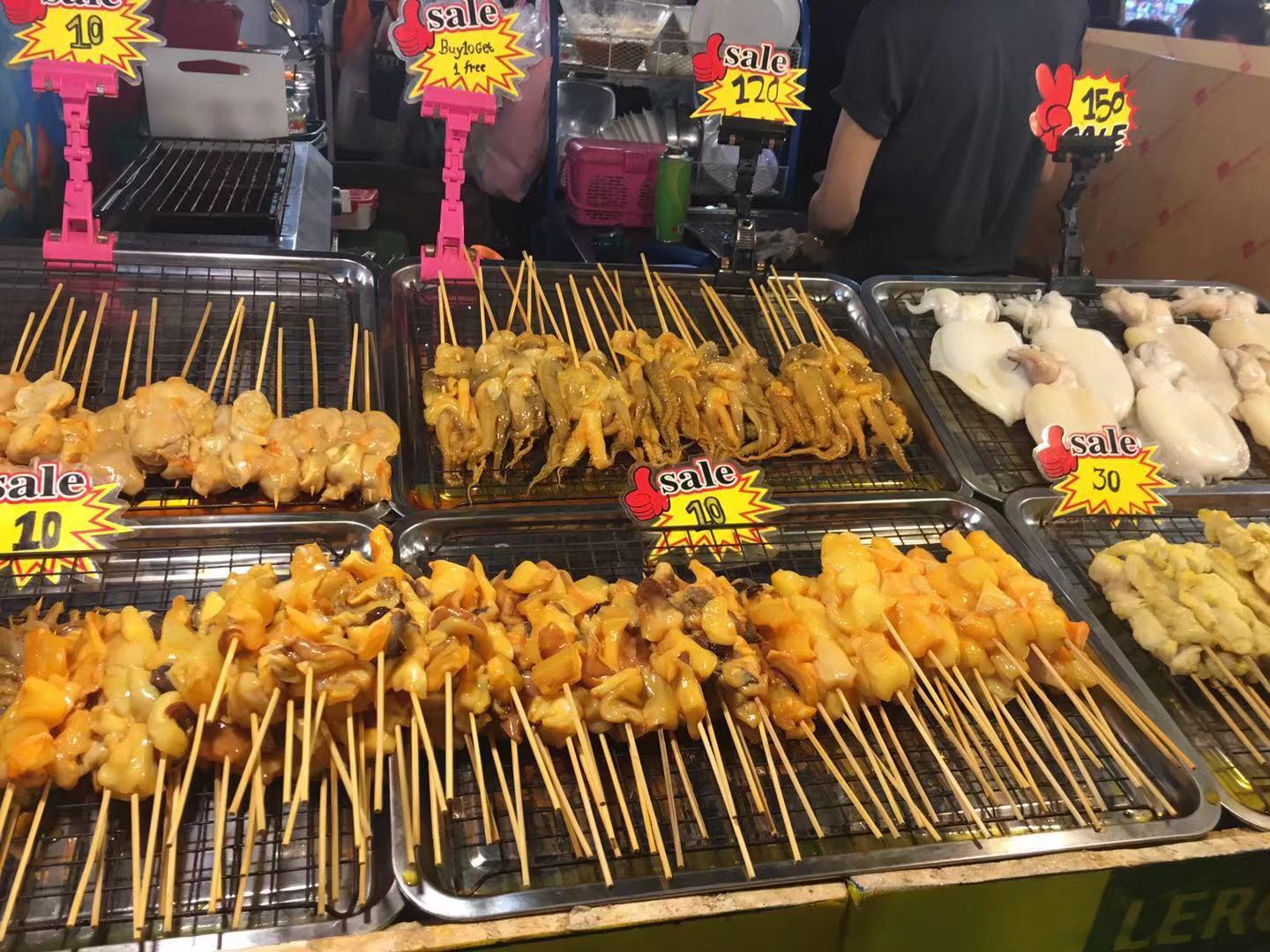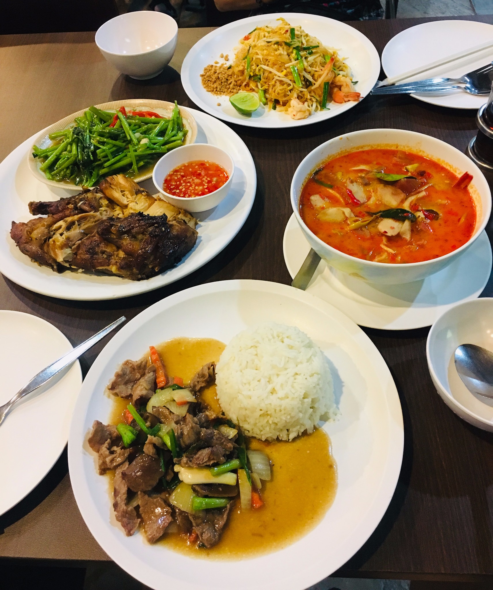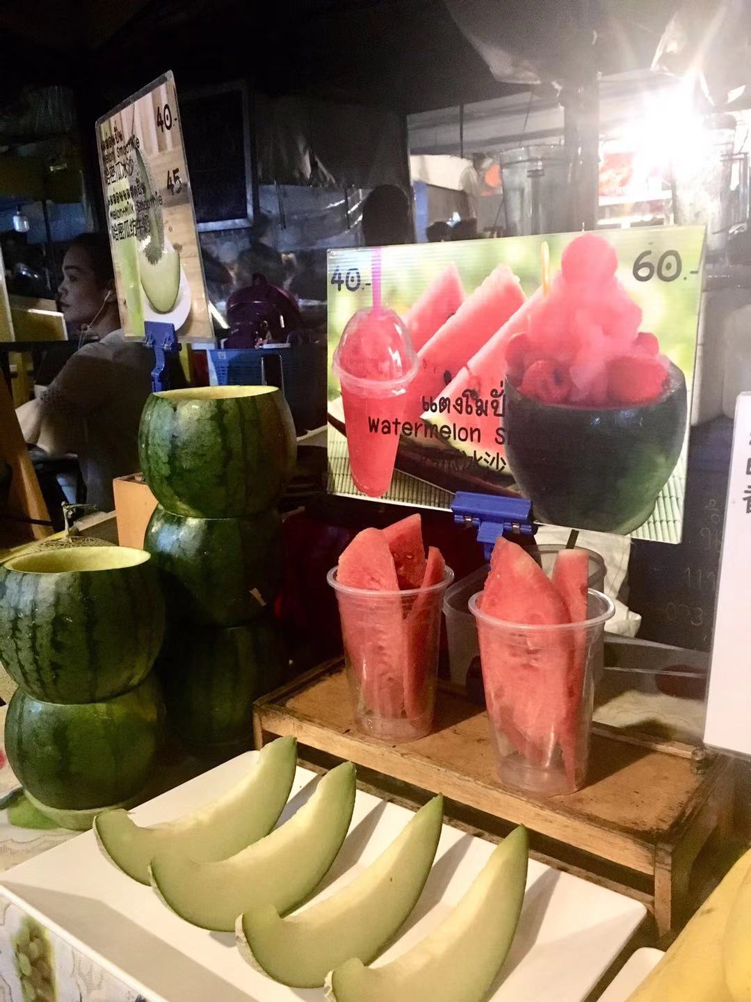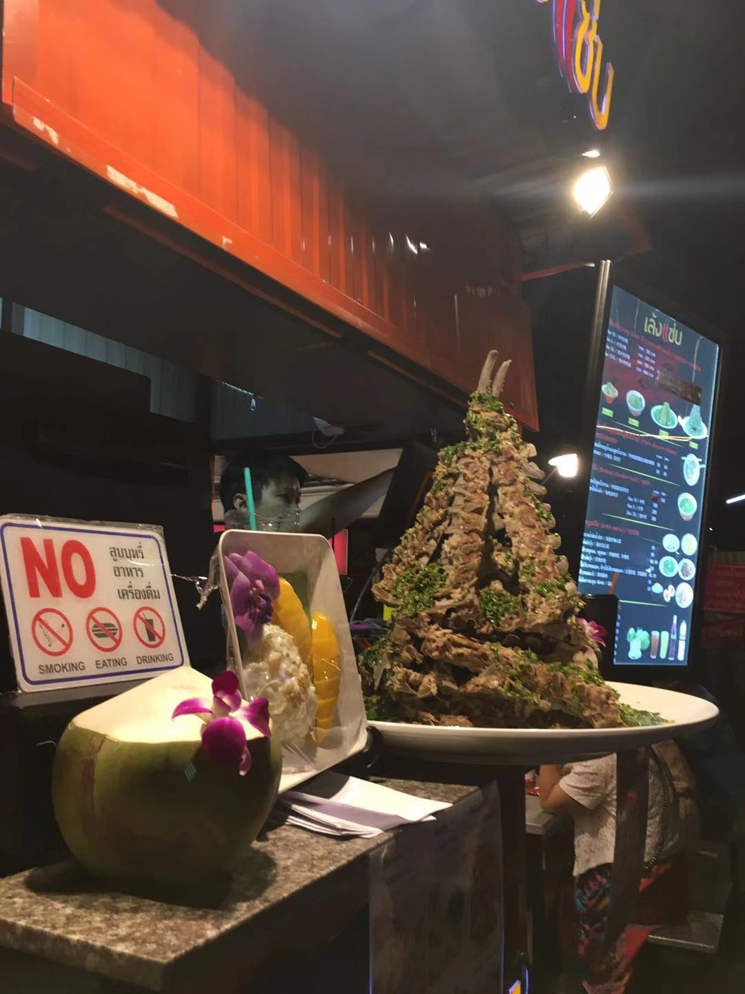 後來才知道我們當時已經到了暹羅廣場( 曼谷 最繁華的地段),在去四面佛的路上吃了冬陰功面和米飯,還偶遇了一家beats店,當時是周五所以很多店都在打折。beats是滿10000泰銖送 布袋 ,滿47000泰銖送小型行李箱,而且有很多買2送1的產品,總體來說很划算(滿2000泰銖可以退稅)。拎著一大袋子東西終於到了四面佛,四面佛就在最繁華的市區裡,周遭有賣祭拜供品的小店。拜完四面佛已經下午三點了,因為沒有提前製定計劃,臨時決定去火車夜市,但是查了時間發現下午五點才開門,就先回酒店休息。到了五點出門輕軌換乘地鐵1h到了火車夜市,可能到的比較早,很多攤位還沒準備好,各個店還沒有上人。溜達了幾圈,打卡了火山排骨就返回了。