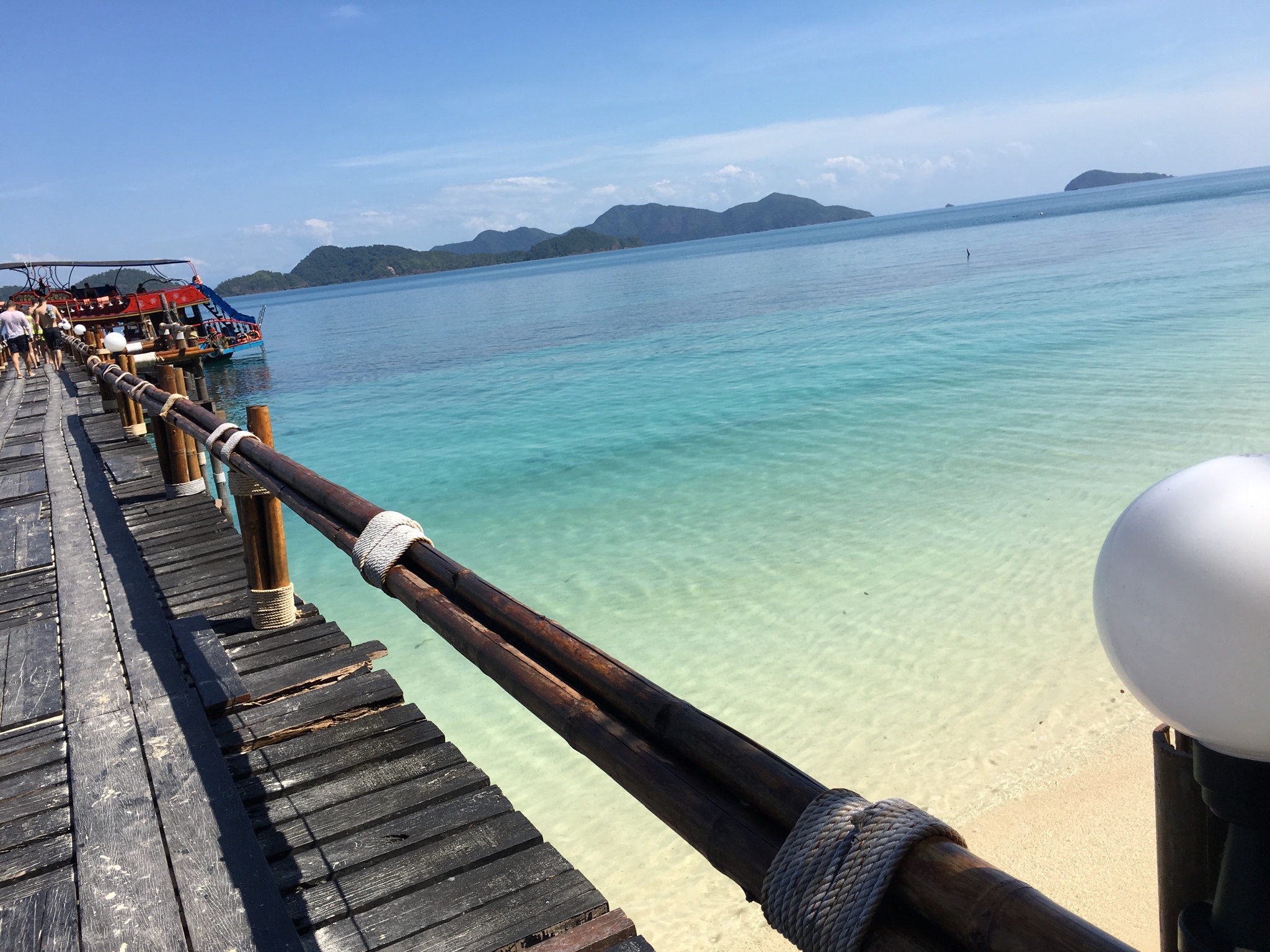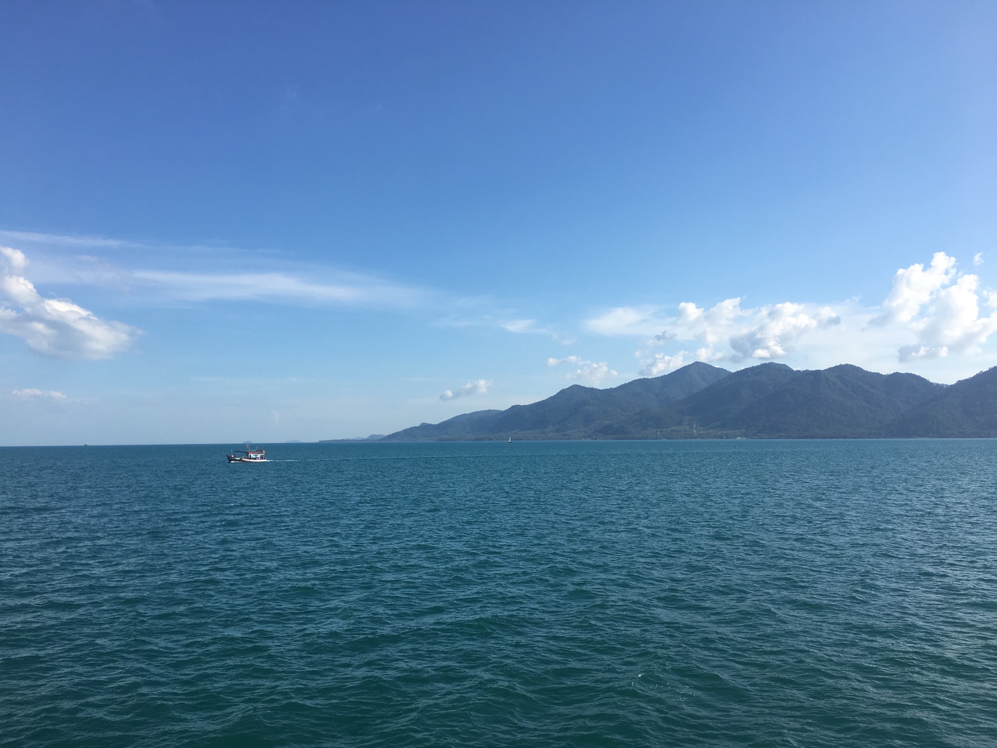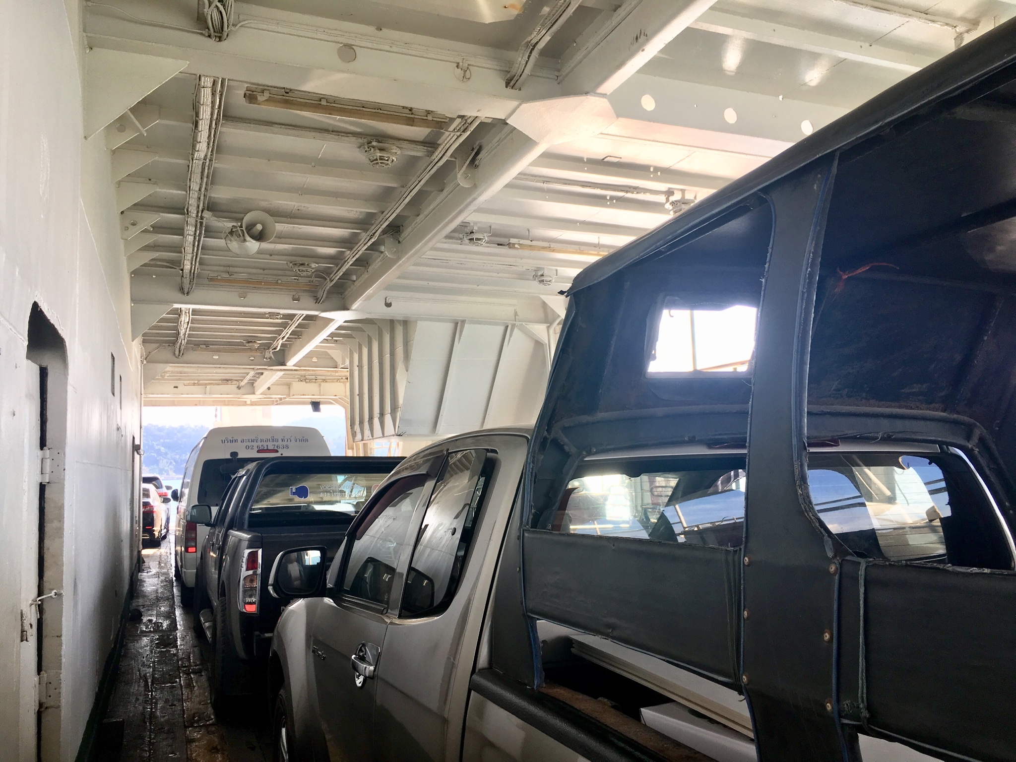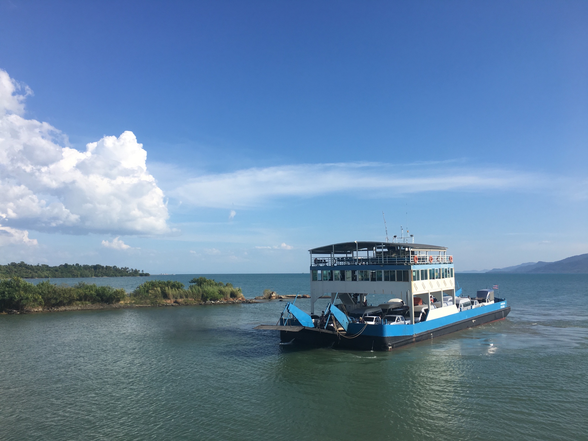 因為拼車到 象島 ,而且 曼谷 到 象島 的車程(拼車是SUV)大約需要6h,所以作為第一個被接的乘客我們早上8點就出發了。陸續接完人正式離開 曼谷 是9點40,我們當時車上一共坐了5人(12座)。沿途司機會停留兩次讓我們上廁所和買東西,而且會簡單的中文和英文。坐了差不多5h的時候,熟睡的我們被司機叫醒,發現連車帶人已經開到了船上,我們也下車到了船三層去觀景,美極了。