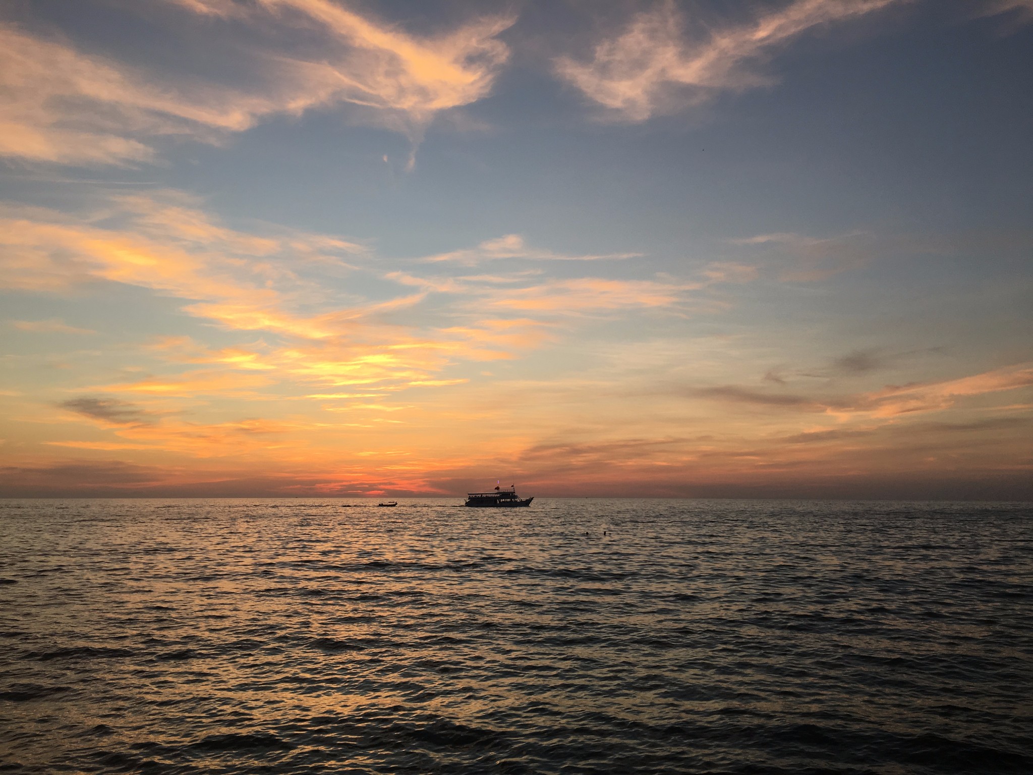 因為之前在網上查了一些攻略,最終在 象島 的4晚定了Koh Chang Grandview Resort酒店,坐落在 白沙 灘的盡頭,周遭很安靜,環境很美。趕到酒店辦理完入住已經四點多了,換了泳衣就直奔酒店門口的大海,在海裡看了落日。