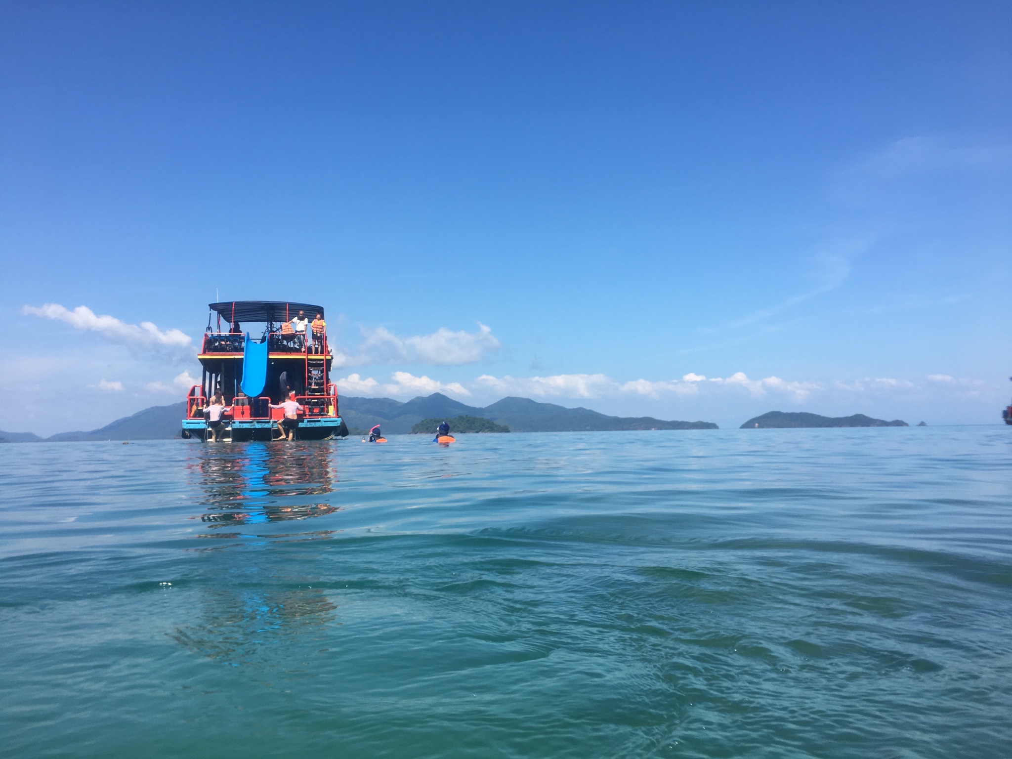 第四天一大早吃完飯就等到了嘟嘟車,沿途陸續接滿人就到了邦寶漁村(浮潛都在邦寶碼頭出航)。出行的順序和時間都是按照商品詳情裡來進行的,所以具體的情況可以諮詢客服。從來沒有浮潛過的我來時還有一些忐忑,但是穿上了救生衣之後下水信心大增(根本沉不下去),跟著指引很容易就掌握了浮潛的基本操作,只能說水真的很清,站在沙灘上就能看到水中游動的魚兒。