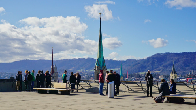 在蘇黎世聯邦理工(ETH)主樓後面的大平台,可以拍攝到蘇黎世教堂們,晴天視野非常好