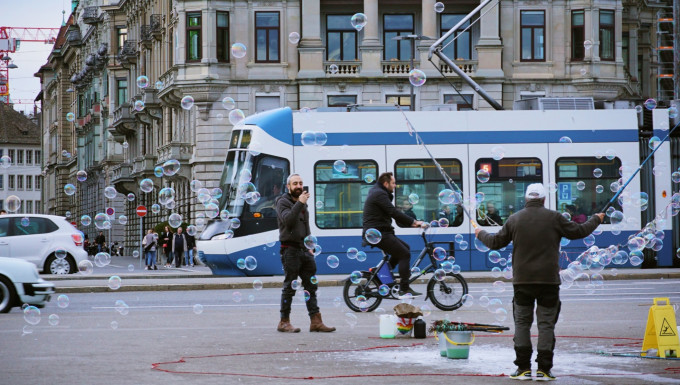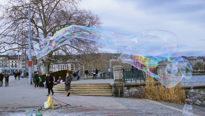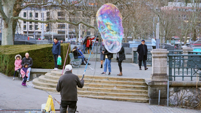 湖邊吹泡泡的老爺爺。據說老爺爺的這一身本領是在中國學的,他去過上海,還會說一些中文,我們看到他跟華人遊客用中文聊天~
