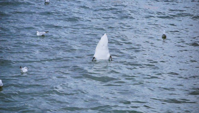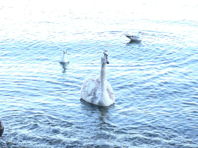 還沒有完全成年的白天鵝,羽毛還是灰色的,希望他快快長大!