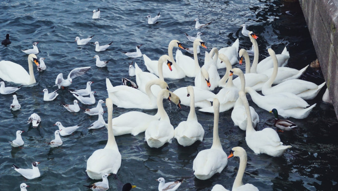 還可以投餵大天鵝,數量可觀,吱哇亂叫,可可愛愛!