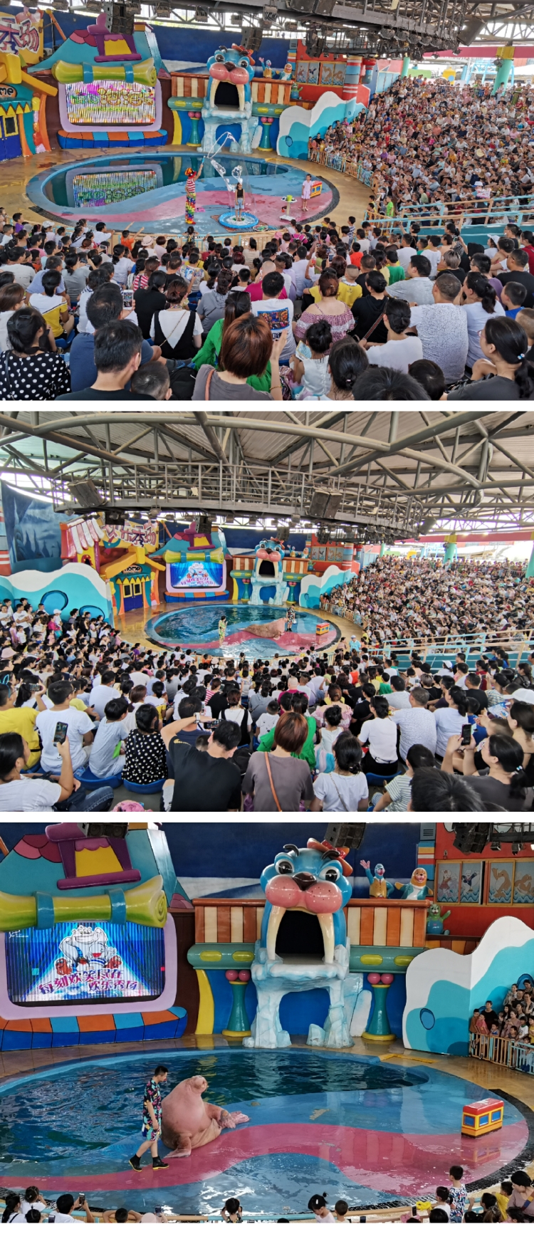 大概就是先是一個小丑玩泡泡,然後和小朋友互動;然後就是海獅,海豹和水瀨表演。