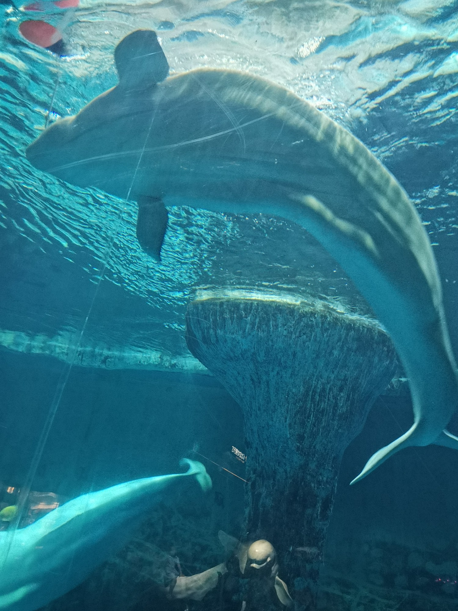 主要是看海豚🦈和白鯨的表演,而且是室內的,比較涼快,音效和燈光都是很不錯的,開場熱身整個館都沸騰了,話不多說,放圖!