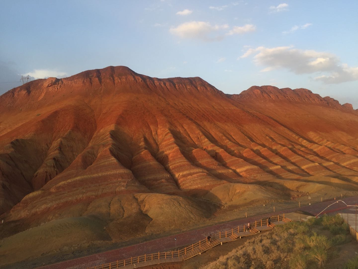 現在也不知那個節點,對於我的人生來說意味著什麼。在張掖的七彩丹霞,我們一行剛到時,天空下著江南晚春常有的小雨,溫溫潤潤,細細嗅嗅,清清爽爽,既有云情也有雨意;我們迎著小雨徐步上山,剛到山頂時,突然間狂風大作,滔天的暴雨磅磅沛沛而下,荒蕪的西北,竟無一物可以擋住蒼天的宣洩,眾人或在風雨中被吹起長發,或被掀起衣裙,皆被此雨照顧得料料峭峭,哆哆嗦嗦,饒是多少英雄豪情,又經得起幾番此等風吹雨打?剎那間雨止、風散、日出,一道道彩虹掛丹霞山的這頭,也掛那頭,如秋日般陽光暖暖的灑在身上,七彩丹霞也因暴雨的清洗過後而格外的透徹清亮,人們不禁想踮起腳尖,揚起臉用鼻尖感受陽光和泥土的芬芳;太陽高照後,便馬上散發出她潑辣的一面,絲毫不留情面,肆虐眾生,命遊人速將墨鏡、帽子、太陽傘拿出護體。