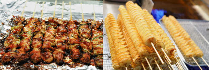 在明洞逛街的真諦就是--邊走邊吃啦。明洞大街兩邊店鋪門口,當時我們去的時候,擺滿了各種小攤,有雞肉串,薯塔,石榴汁,章魚小丸子,各種各樣,眼花繚亂。雖然剛剛吃完烤魚,但是還是忍不住誘惑,買了很多小吃嚐嚐鮮,而且很多小販都會一點中文,溝通還是足夠的~