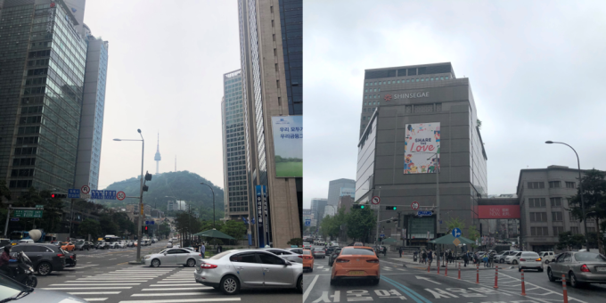 達之後我們的第一站就是新世界免稅店啦!來韓國不買買買那是不可能的~新世界免稅店跟其他幾個免稅店不一樣的是,建築外觀獨特,和普通四四方方的的百貨店建築風格不同,非常有藝術氣息,旁邊另一個新世界百貨總店建築物是韓國第一間百貨公司的所在地。而且附近就有南山塔,風景不是一般的好看呀~大樓的8~12層是免稅店,遊客可以憑護照和返程機票買到免稅產品,直接機場提貨,省掉了很多麻煩~