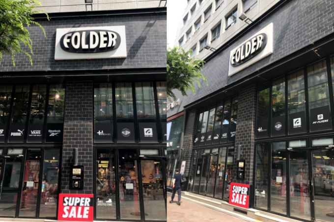 兩邊有很多專賣店,人氣最旺的還是鞋子的專賣店啦~韓國不僅有像nike、阿迪達斯這種品牌的專賣店,也有FOLDER,ABC MART這樣的集合店,裡面聚集了目前流行的各種品牌的鞋子,比較方便的一點就是不用一家一家鞋店去跑,逛一家就可以搞定啦~