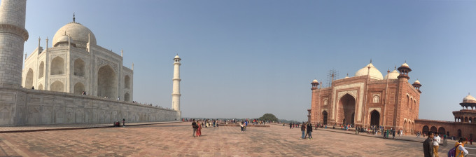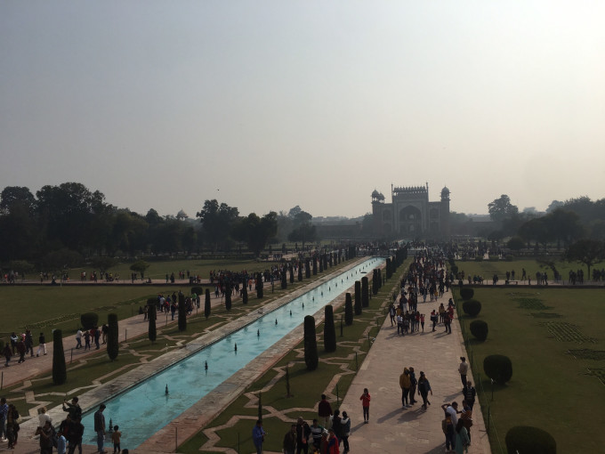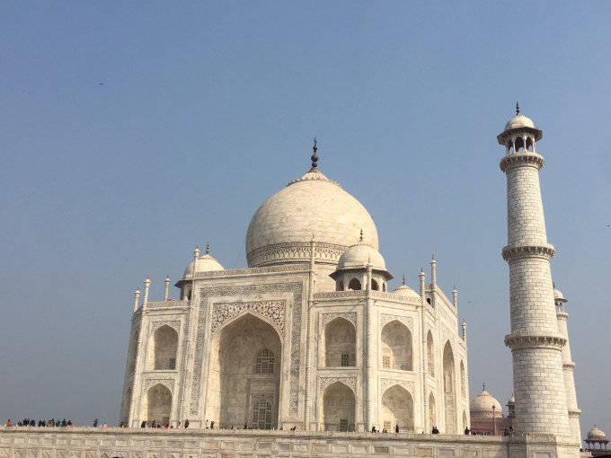 泰姬陵本尊!不同天氣不同光照泰姬陵主題的顏色都不同。進到裡面不讓拍照,展示的有兩個棺木,全是空的,莫臥兒皇帝沙賈汗和他的愛妃實際上被埋在了地底下。可以看到有個往地下走的口,但是被擋住不讓進。