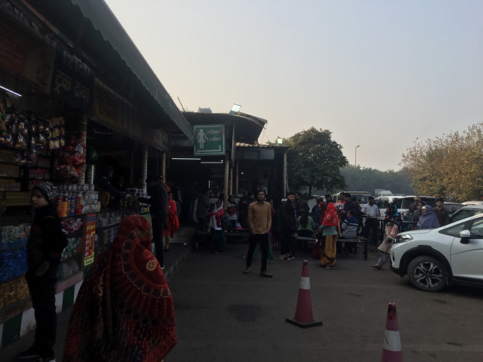 提前在螞蜂窩上找印度麥子定了德里到安格拉泰姬陵的一日遊,所以沒睡倆小時就起來了。司機基本不能溝通,但是有個當地人陪我一起去,整體感覺還挺好的。在印度,政府部門登記的拉客車輛都強行在車裡做了什麼,所以速度上限80邁,油門踩穿也就這樣了。眼見在高速上別的車呼呼的開,我就只能勻速80的前進……車程4-5小時,大部分都是高速路,中途有個高速休息區,如下圖所示