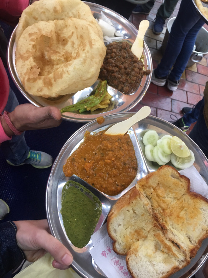 和同事嘗試了些當地小吃,帶油餅的超好吃!價格很便宜:上面的套餐50盧比,下面的60盧比。