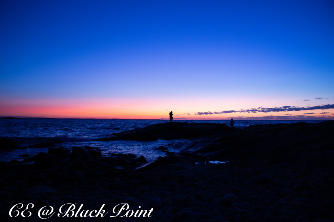 五點半起床開車十五分鐘到Black Point Trailhead。Trail很短,走進去就是海邊的大塊礁石。有幾個人站在巨浪拍打的礁石上釣魚。