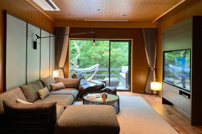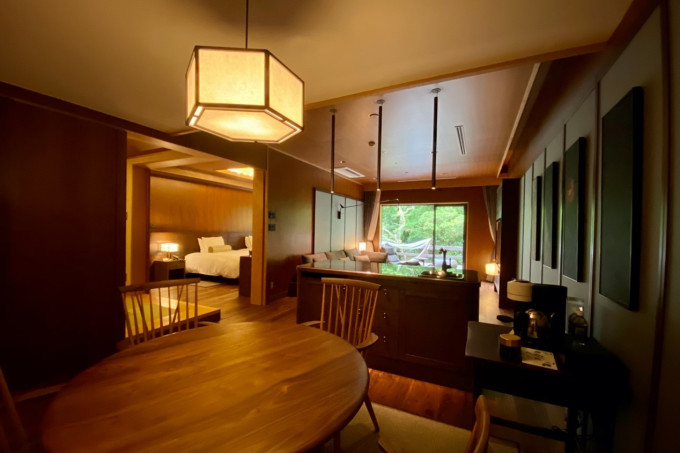 這家酒店所有客房都備有露天溫泉,設施絕對是沒得挑。而小微這次住的是相對於一般客房來說,更為獨立和隱秘的一個房間。100多平米的酒店房間在日本顯得有點奢侈,但是房間內的氛圍又會讓人覺得一切都是恰到好處,雖然奢華但毫不過分,不能不說這個平衡拿捏的很好。
