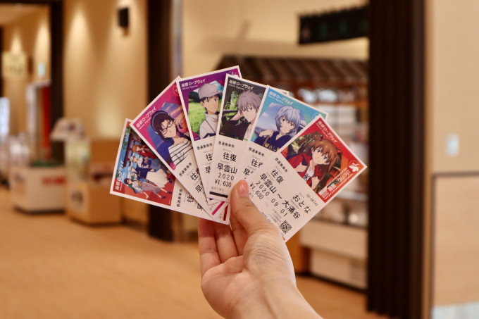 到強羅站之後換乘登山纜車,登山纜車除了造型特別之外倒沒什麼可說的。它的終點站也是空中纜車的起點站——早雲山站。下車之後換乘,這裡推荐一個“海賊船和空中纜車一日券※”,適合想在一天之內乘坐空中纜車和海賊船往返的遊客。當然,要是EVA的粉絲,那麼直接買票也挺好的,看下面的照片你就懂了。有那種為了收集全部圖案而花錢買所有車票的人嗎?我跟你們說,真的有啊!