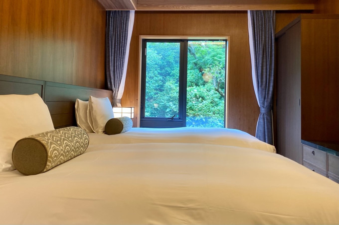 整個酒店被山林包圍著,重視的是私密感。住在這裡就像是在隱居,彷彿周圍的一切都是自己的。我們無法逃離生活,也不能真的隱居南山梅妻鶴子孤獨終老。但是現在我們有機會去體驗這種生活,至少能有一晚,舉杯邀明月,在深山密林中暫時忘掉所有的憂慮,盡情享受美酒、美食和溫泉。這種幸福感可能遠比每天都這樣度過強烈得多,這大概就是翠松園最想帶給客人的東西吧。